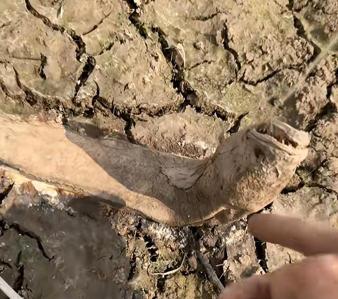 2025年2月17日,IP地址为四川的博主@户外小掌柜发布了一则视频,展示的是他在某处干涸的池塘中的意外见闻,配文是:“那些年跑掉的鱼,给你找到原因了。”